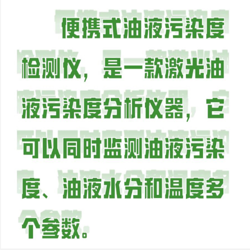 便携式油液污染度检测仪,是一款激光油液污染度分析仪器,它可以同时监测油液污染度、油液水分和温度多个参数。可以及丨时报告来自液压和润滑系统所处的情况,以防丨止污染物对液压系统部件的磨损或破坏